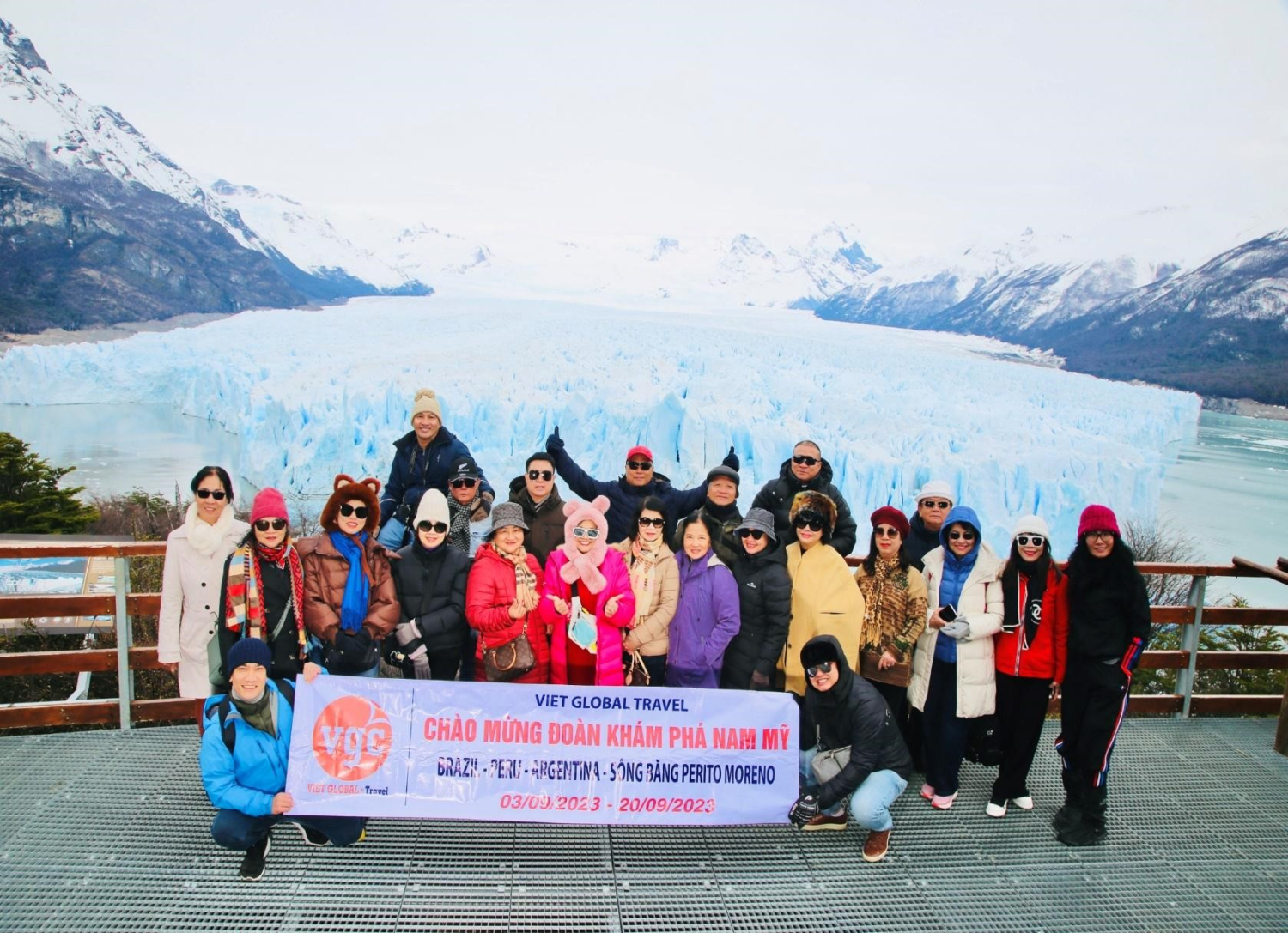 Kế đó, đoàn bắt đầu hành trình đi bộ theo 1 con đường gỗ vào công viên quốc gia nơi mà cứ mỗi đoạn, lại có một ban công rộng để cho cả đoàn ngắm nhìn và chụp ảnh sông băng. Vẻ đẹp hùng vĩ của sông băng Perito đã thuyết phục được những du khách khó tính nhất.